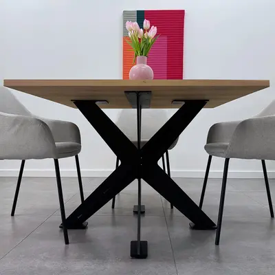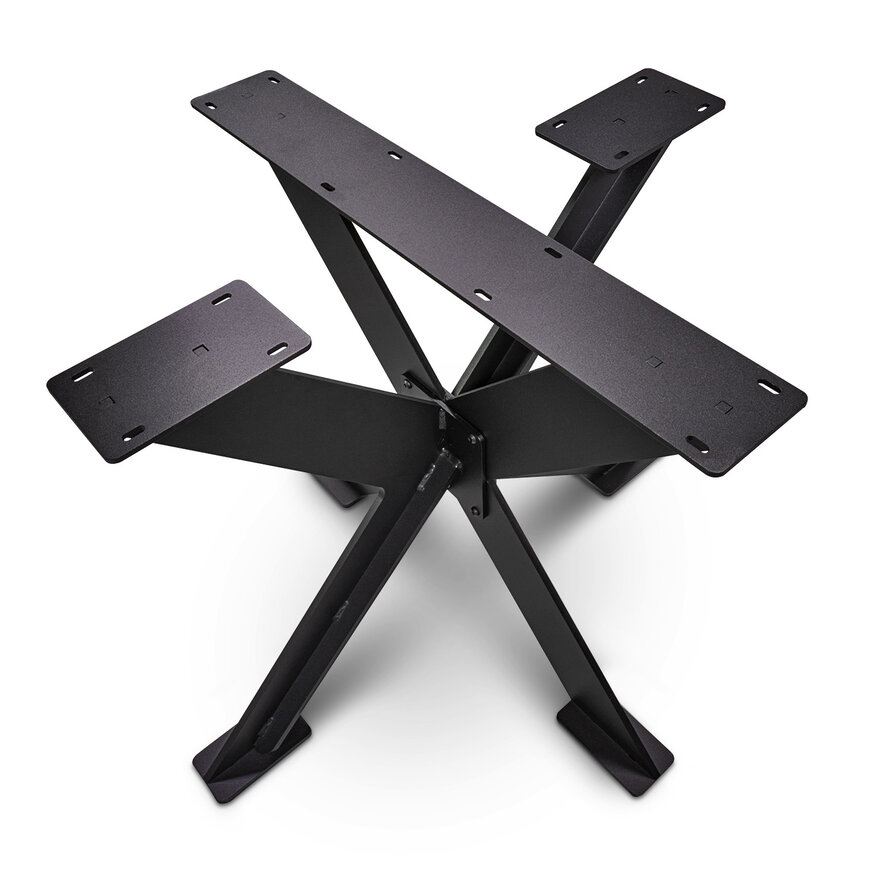 Het zwarte dubbele X tafelonderstel is een prachtige metalen "centrale tafelpoot" met een moderne uitstraling & stoer accent. Een kwalitatief tafel onderstel van stevig staal / ijzer met stoere matzwarte fijnstructuur poedercoating in moderne dubbele X-po Lees meer