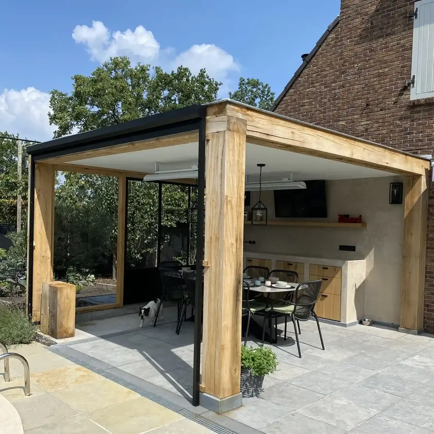 Een eerlijk verhaal - ruwe eiken AD balken voor buiten.