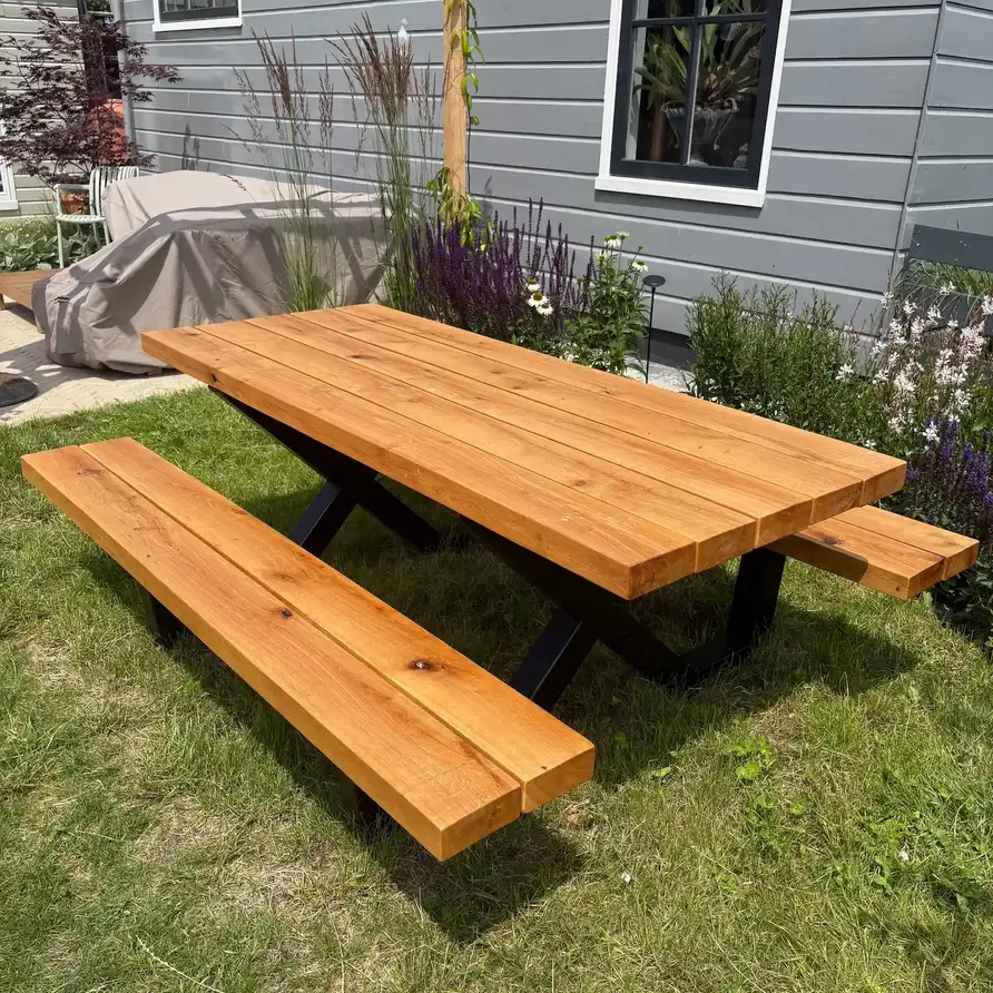 U ontvangt tuinhout dat nog bewerkt & verwerkt wordt. Eiken werkt (krimpt, zet uit & scheurt) relatief veel, is vlekgevoelig en bevat noesten, scheuren en mogelijk onaangetast spint en ingesloten hart. Ons eikenhout heeft ruwe uiteinden en een extra lengte van 1 - 10 cm. Eikenhout bevat looistoffen en kan - door direct contact met metaal - corrosie veroorzaken, gebruik altijd bevestigingsmateriaal van RVS. Ruw (fijnbezaagd) hout bevat houtvezels & oneffenheden aan het oppervlak en is niet recht, haaks, maatvast & vormvast. Houd er ook rekening mee dat - door werking van het hout - maatafwijkingen ontstaan. AD (air dried) hout is "vers" hout - eventueel al iets aangedroogd - dat nog actief zal werken, oftewel scheuren & mogelijk kromtrekken. Omdat het hout 'vers' gezaagd wordt, kan de kopmaat door droging wat kleiner uitvallen. Rustiek eikenhout voor buiten is dan ook echt voor de liefhebber!