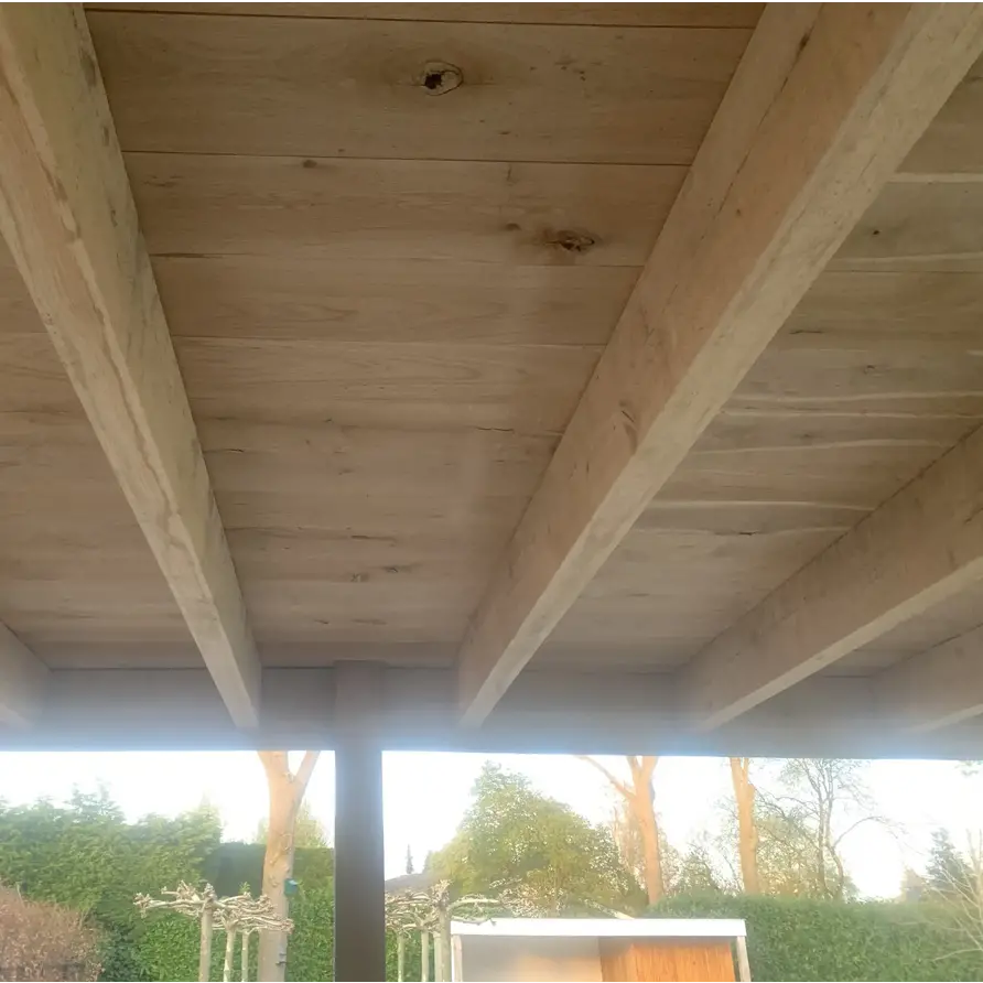 Een eerlijk verhaal - geschaafde eiken AD balken voor buiten.