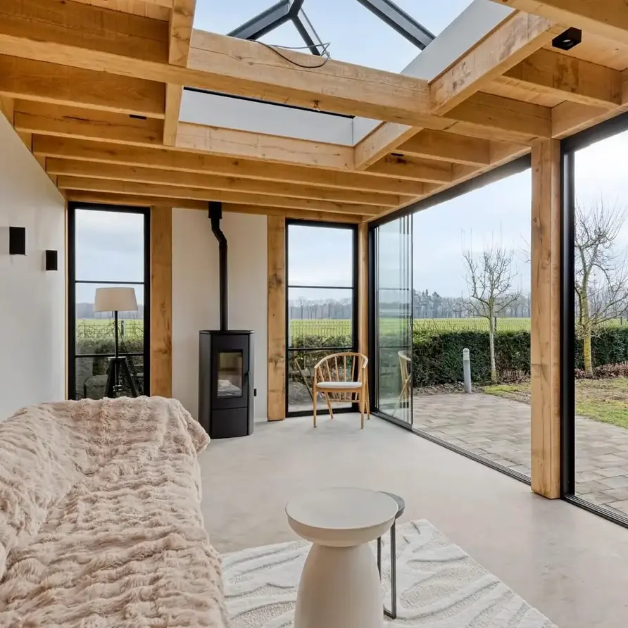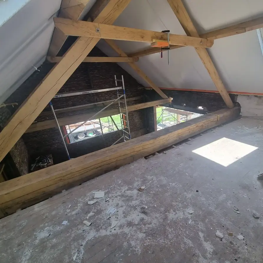 Een eerlijk verhaal - ruwe eiken AD balken voor buiten.