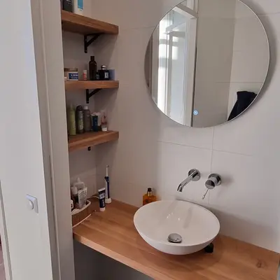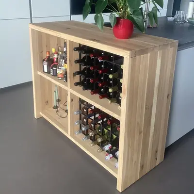 Standaard wordt een rustiek eiken (meubel) paneel onbehandeld geleverd, met open noesten en scheurtjes, scherpe randen en een fijn geschuurde afwerking.
