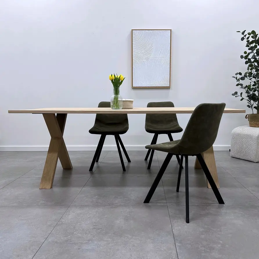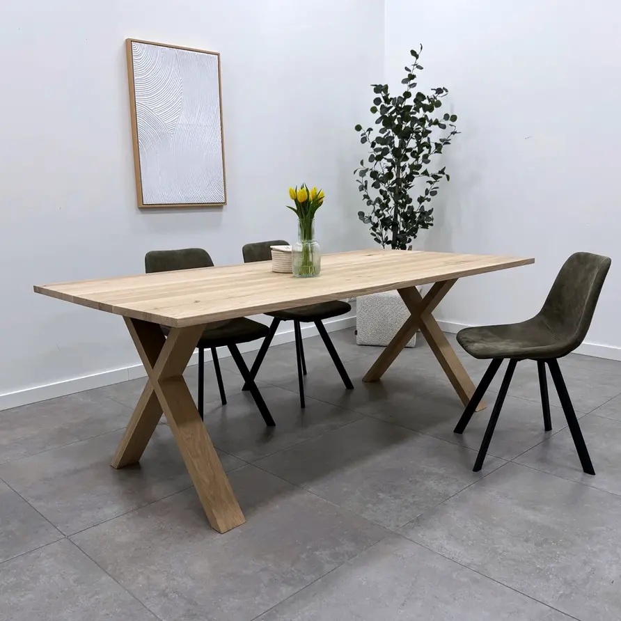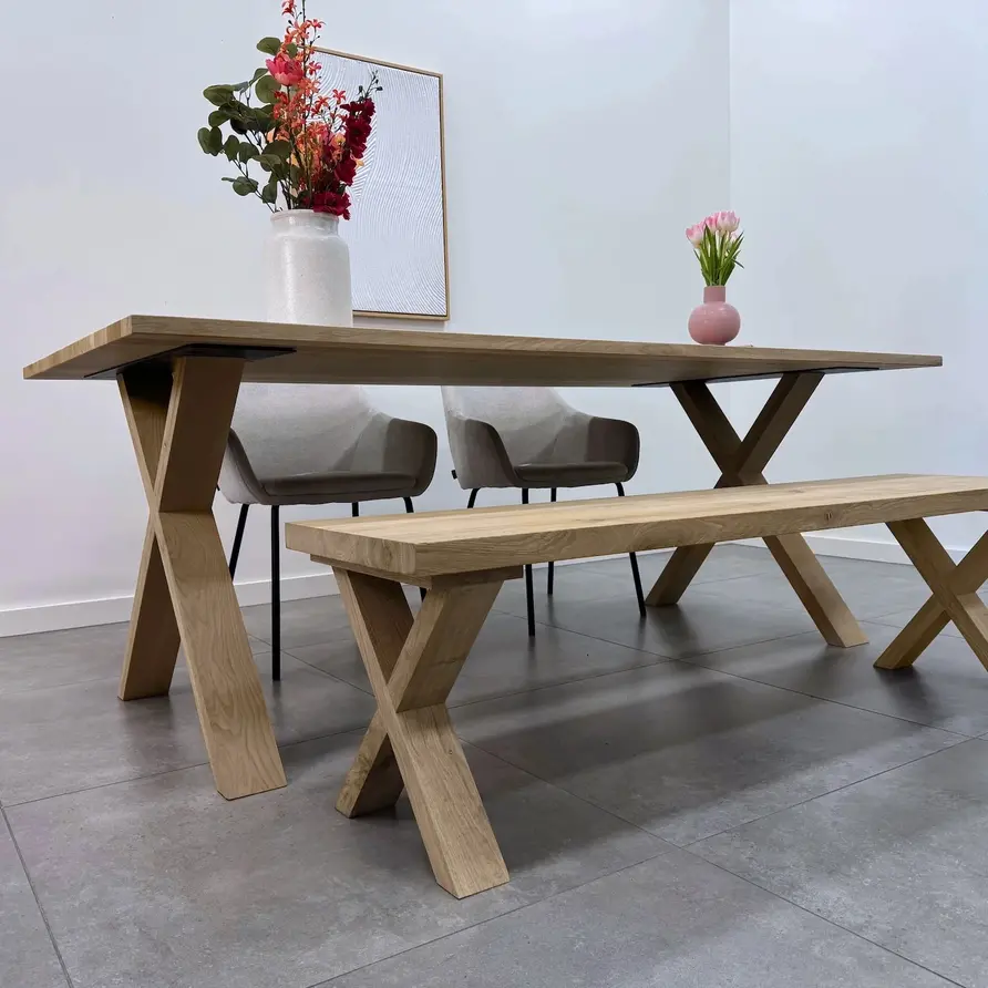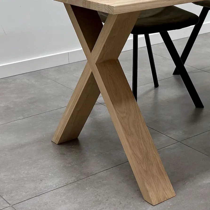 Eiken kruispoot tafel SET (2 stuks) 10x4 cm - 72 hoog - 77 breed. X-tafelpoot van rustiek eikenhout 12% kd Stijlvolle eiken tafel poten in X / kruis vorm! Lees meer