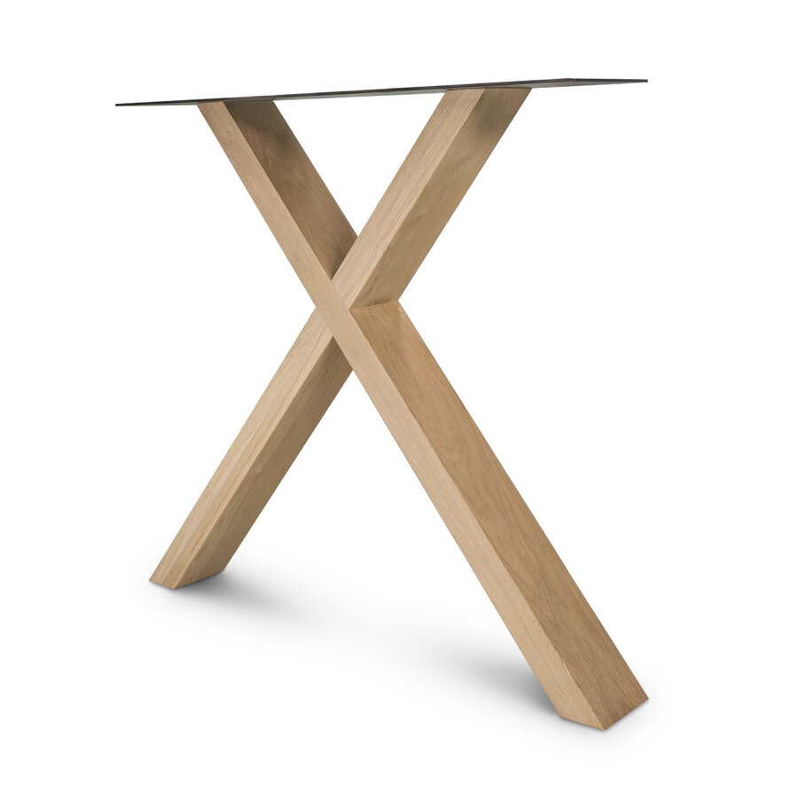 Eiken kruispoot SET (2 stuks) 10x4 cm - 72 cm hoog - 77 cm breed onderzijde - 78 cm breed bovenzijde - X-tafelpoot 12% KD Europees eikenhout