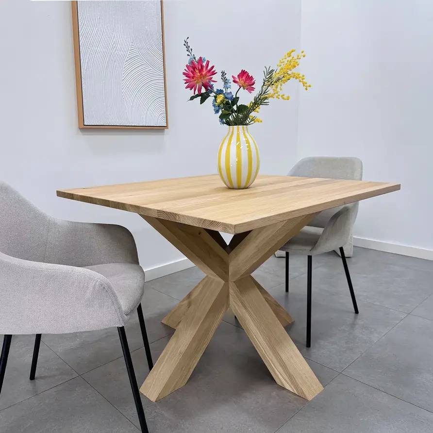 Eiken dubbele kruispoot 10x10 cm - 72 cm hoog - 80x80 cm - Rustiek licht geborsteld - Dubbele X tafelpoot - 12% KD Europees eikenhout