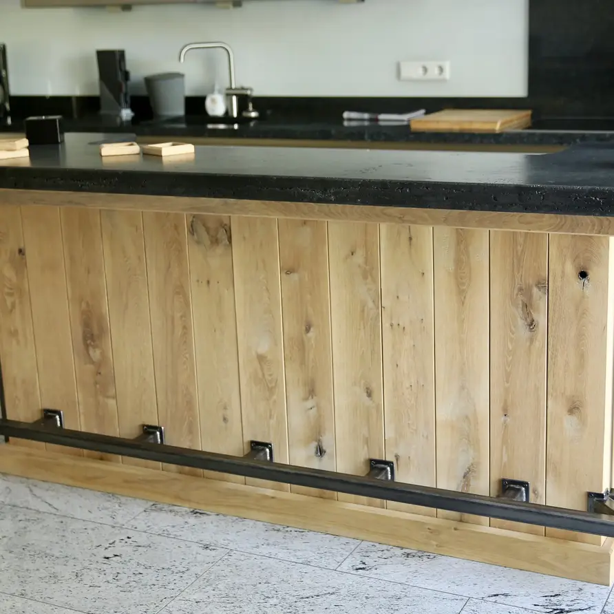 U ontvangt constructiehout dat nog bewerkt & verwerkt wordt. Eiken is vrij vlekgevoelig en bevat noesten, scheuren en mogelijk onaangetast spint en ingesloten hart. Ons eikenhout heeft ruwe uiteinden en een beperkte extra lengte. Geschaafd hout is - in vergelijking met ruw hout - relatief egaal, glad & vormstabiel. Houd er wel rekening mee dat - door werking van het hout - maatafwijkingen ontstaan. Er is sprake van één zichtzijde, de achterzijde is mogelijk wat ruwer & mag foutjes bevatten. KD (killn dried) 8-12% hout is kunstmatig gedroogd hout met een vochtpercentage van 8-12%. Dit hout(vochtpercentage) is geschikt voor binnen en wordt met name gebruikt voor het binnenwerk van buiten objecten. Rustiek eikenhout is echt voor de liefhebber!