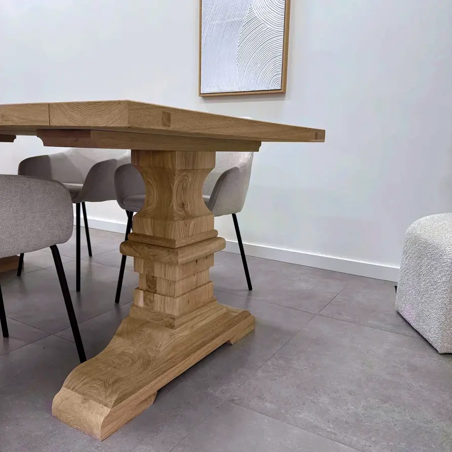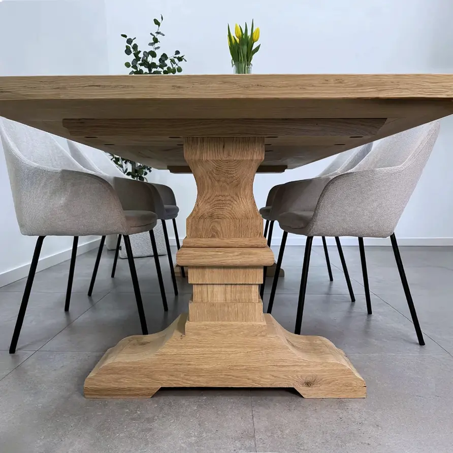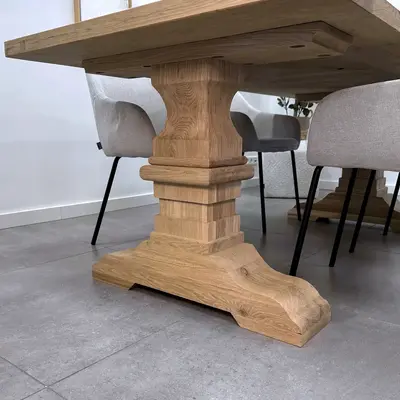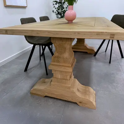 LET OP: Deze tafelpoot is geschikt voor tafelbladen vanaf 80 cm breed (minimaal), echter wordt deze eiken tafelpoot met name gebruikt voor tafelbladen met een breedte tussen de 90 - 100 cm.