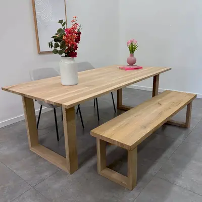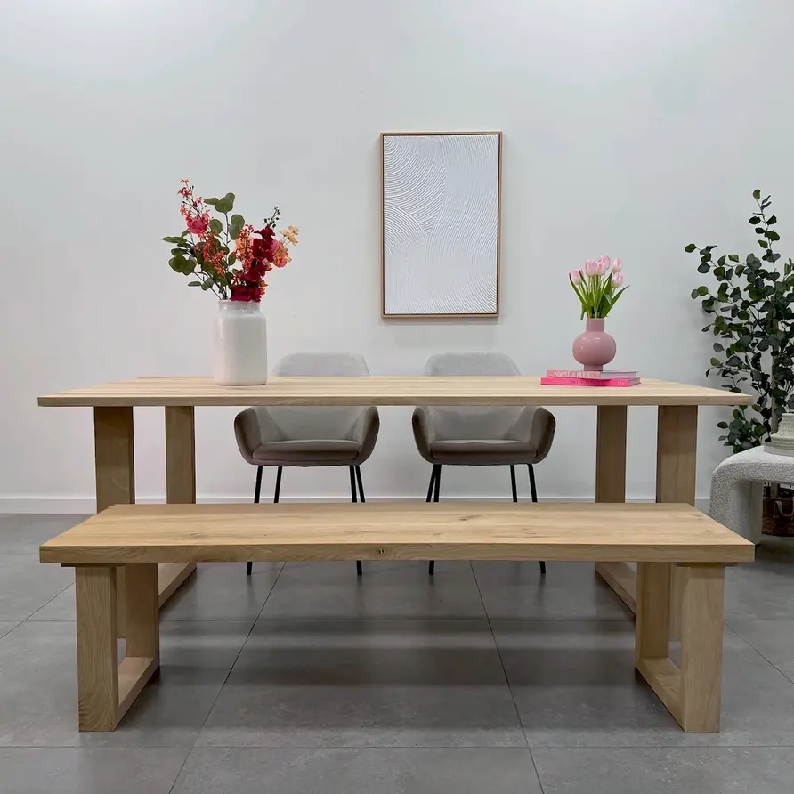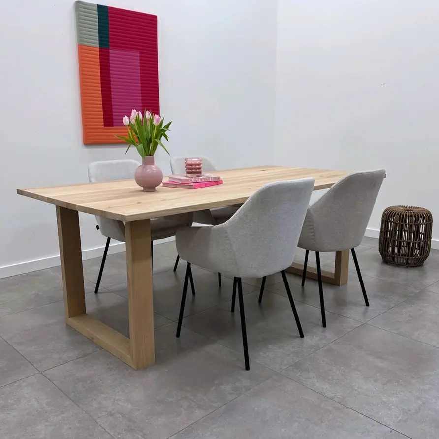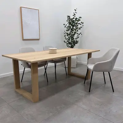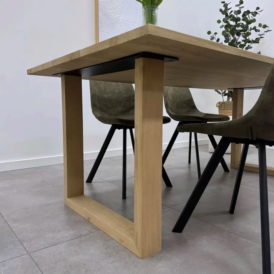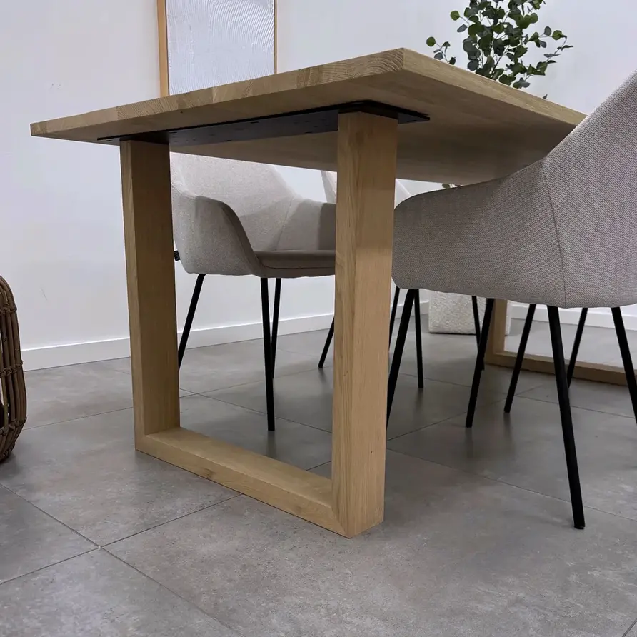 Massief eiken U-poot SET (2 stuks) - 10x4 cm U-tafelpoot - 72 cm hoog - 70 cm breed onderzijde - 78 cm breed (breedte van de montageplaat) - breedte onderkant poot: 70 cm - onbehandeld rustiek Europees eikenhout - kunstmatig gedroogd (kd) circa 12% -geschaafd. Een stijlvolle eiken U-tafelpoot die zorgvuldig met de hand gemaakt is door vakmannen. Deze bijzondere U tafelpoot is vervaardigd uit rustiek Europees eikenhout (bevat kleine noesten & scheurtjes), dat eerst gedroogd wordt tot circa 12%. Het eikenhout wordt vervolgens geschaafd. Een bijzondere U-tafelpoot van eikenhout, voor een bijzondere tafel!