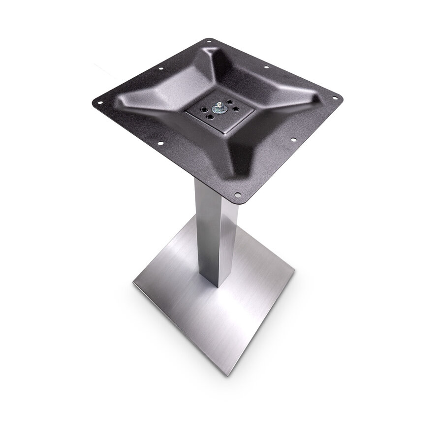 Gietijzeren (horeca)tafel onderstel vierkant RVS look - op voet - 8x8cm - 72cm hoog - 40x40cm voet - 30x30cm montageplaat - RVS / INOX look (glad) gecoat! Lees meer
