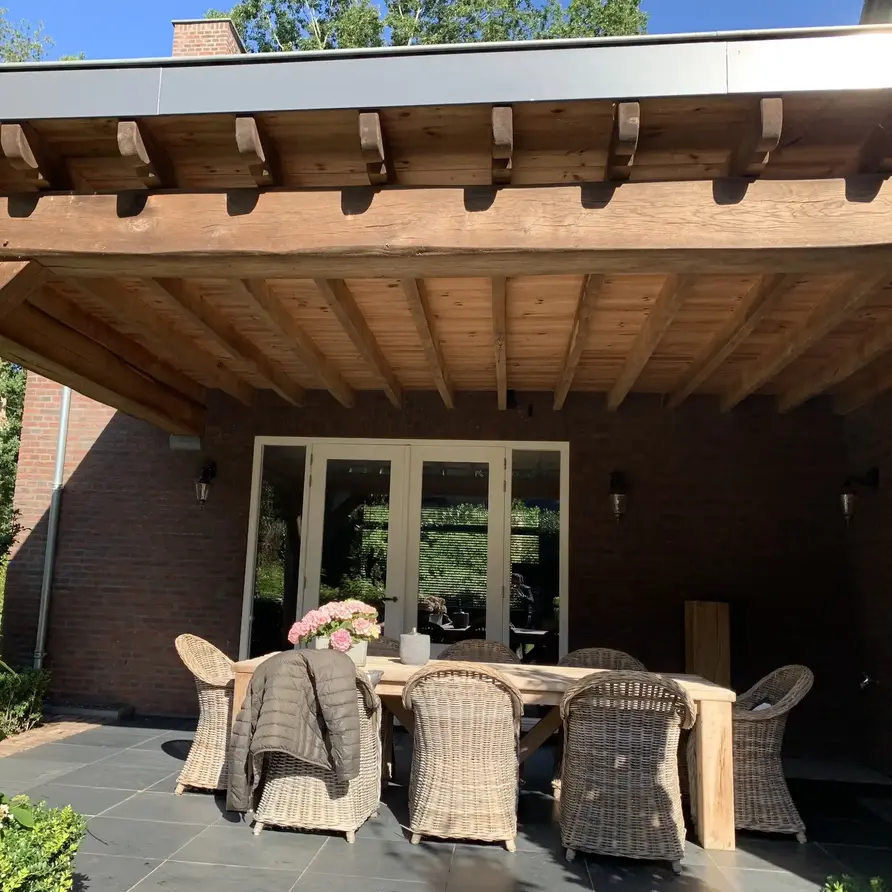 Een eerlijk verhaal - oude eiken AD balken voor buiten.