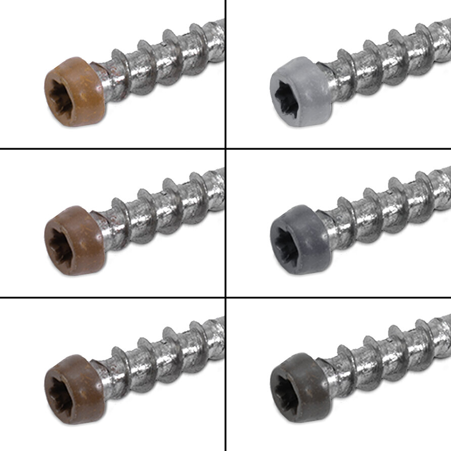 PuraFix montageschroeven RVS - diameter: 5 mm - lengte: 60 mm - vlonderschroeven - 75 stuks - inclusief bitje (Torx 20) - in kleur gecoate schroefkop - grove spoed - deeldraad - met snijpunt. Een RVS montageschroef van roestvrij staal met grove spoed en deeldraad. Deze gecoate schroeven van RVS zijn voorzien van een speciale snijpunt en grove spoed, waardoor de schroef zich razendsnel vast boort. De RVS schroef is zelfborend, echter is composiet brosser dan hout. Daarom raden wij altijd aan om eerst voor te boren. Verder is de schroef voorzien van een kleine kop die speciaal in een bijpassende kleur is gecoat, waardoor deze bijna niet opvalt tegen het composiet. Ideaal dus voor het netjes afwerken van uw composiet vlonder of gevel.