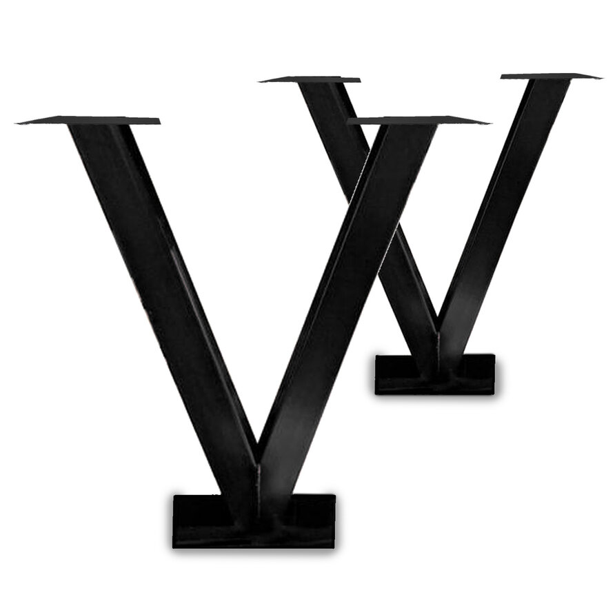 Stalen V-statafelpoten (SET) - V-poot op voet - 10x10 cm - 91 cm breed - 100 cm hoog - 20x40 cm (voet)plaatafmeting - Zwarte gecoat staal