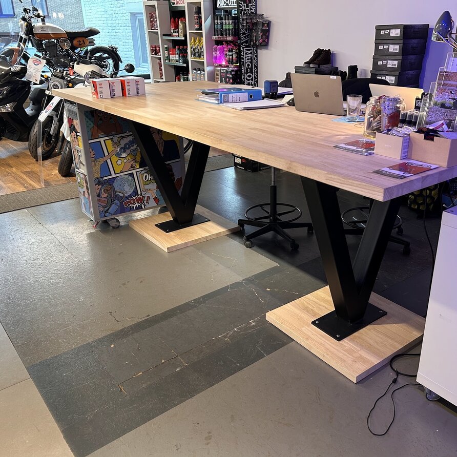 Stalen V-statafelpoten (SET) - V-poot op voet - 10x10 cm - 91cm breed - 100cm hoog - 20x40cm (voet)plaat- Zwart gecoat staal! Lees meer