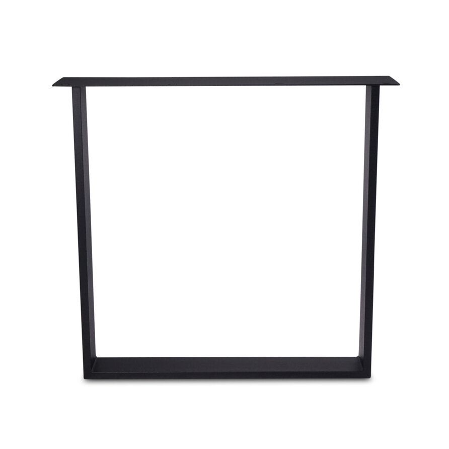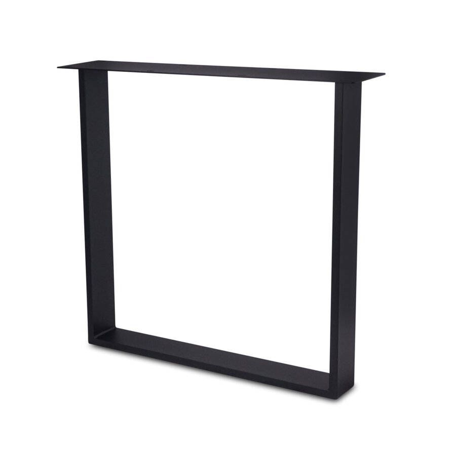 Zwarte U-poten van metaal - met een (koker)dikte van 2x10 cm, een hoogte van 72 cm en een breedte van 78 cm (montageplaat) - 70 cm (onderzijde) - die met de hand worden vervaardigd. De 2x10 cm koker geeft de poot een slank uiterlijk. Met de moderne U-vorm & de stoere matzwarte fijnstructuur poedercoating bent u verzekerd van een stijlvolle metalen tafelpoot.
