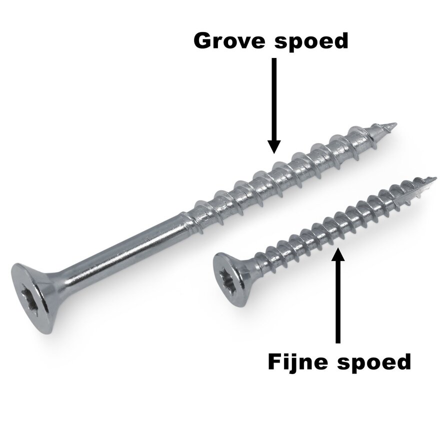 Universele houtschroeven verzinkt - diameter: 4 mm - schroeven voor (tuin)hout - 200 stuks - inclusief bitje - geelverzinkt staal - platverzonken kop - grove spoed - deeldraad - met snijpunt. Verzinkte universele houtschroef met grove spoed en deeldraad. Deze verzinkte houtschroef is voorzien van een speciale snijpunt en grove draad waardoor de schroef zich zonder moeite in de meeste houtsoorten boort. Dit is een zelfborende schroef, er hoeft meestal niet voorgeboord te worden. Het hout zal bij normaal gebruik ook zonder voorboren niet splijten. Dankzij deze speciale snijpunt en de grove draad gaat het monteren van deze schroeven razendsnel.