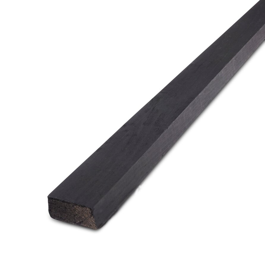 Een zwart gebeitst vuren ventilatielat - 18x40 mm geschaafd is een massief houten lat die vaak gebruikt wordt voor (de achter constructie van) houten gevelbekleding van zwart gebeitst vurenhout. U bestelt een ventilatie lat van zwart gebeitst vurenhout (KD 18-20%) eenvoudig & voordelig online bij HOUTvakman.nl, in diverse lengtes uiteraard. Een ventilatielat - met ventilerend profiel - is een van de meest gebruikte houten latten voor het "regelwerk" van houten gevelbekleding & buiten wanden. Deze lat is afgeschuind voor een verbeterde luchtstroom & voldoende beluchting, waardoor vocht zich niet op kan hopen. . Zwart vuren hout is speciaal geschikt voor buiten. Zwart gebeitst vurenhout is hoogwaardig tuinhout met een stoere zwarte kleur (basis afwerklaag). Altijd een zwart gebeitst vuren houten ventilatieprofiel voor uw buitenproject bij HOUTvakman.nl!